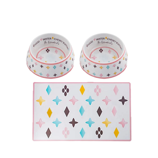 Grappige Design Voer & Drinkbakken - Chewy Vuiton