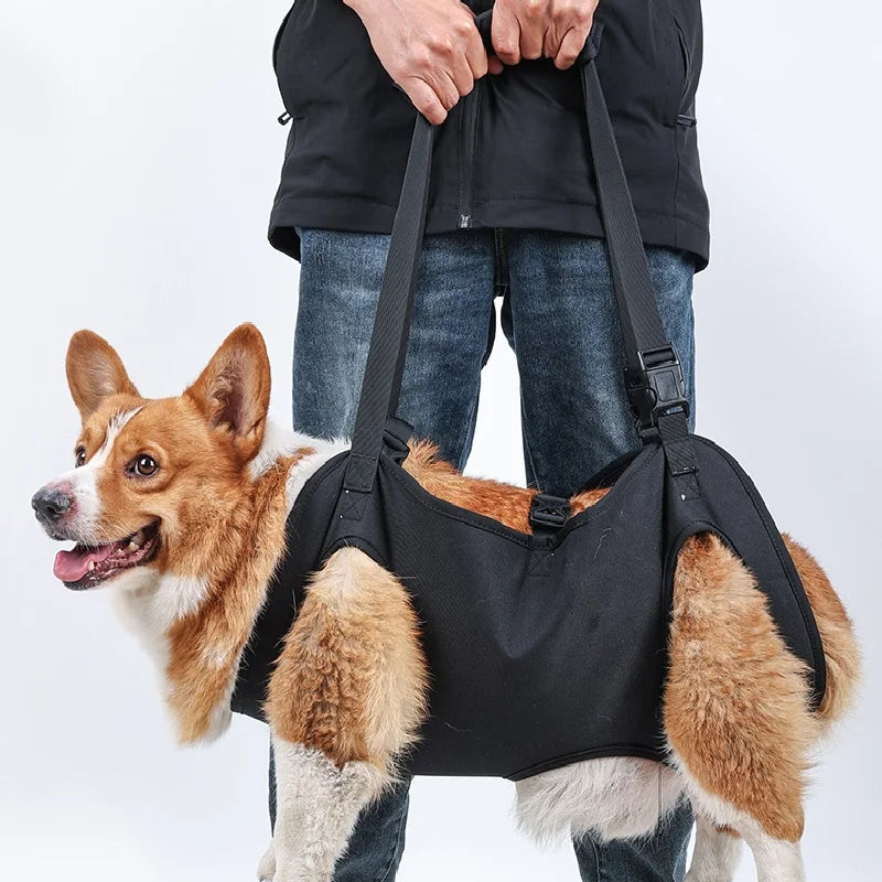 - Eenvoudig Te Gebruiken: Dankzij de handige handgrepen en verstelbare riemen kunt u uw hond gemakkelijk optillen en ondersteunen waar nodig.