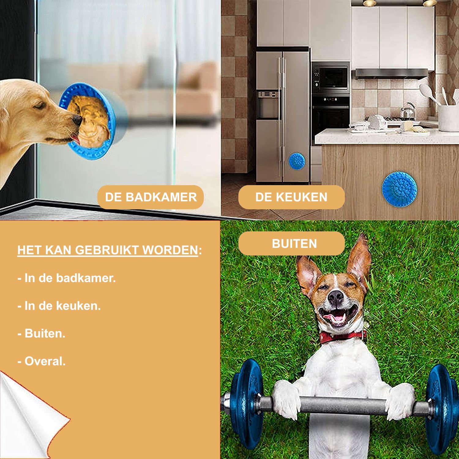 Zuignaptechnologie: Dankzij de stevige zuignap aan de achterkant van de kom, blijft deze op elk glad oppervlak stevig op zijn plaats zitten. Of je nu de likkom op de vloer, een raam of een tegelwand bevestigt, je hoeft je geen zorgen te maken dat jouw enthousiaste viervoeter het omver gooit.
