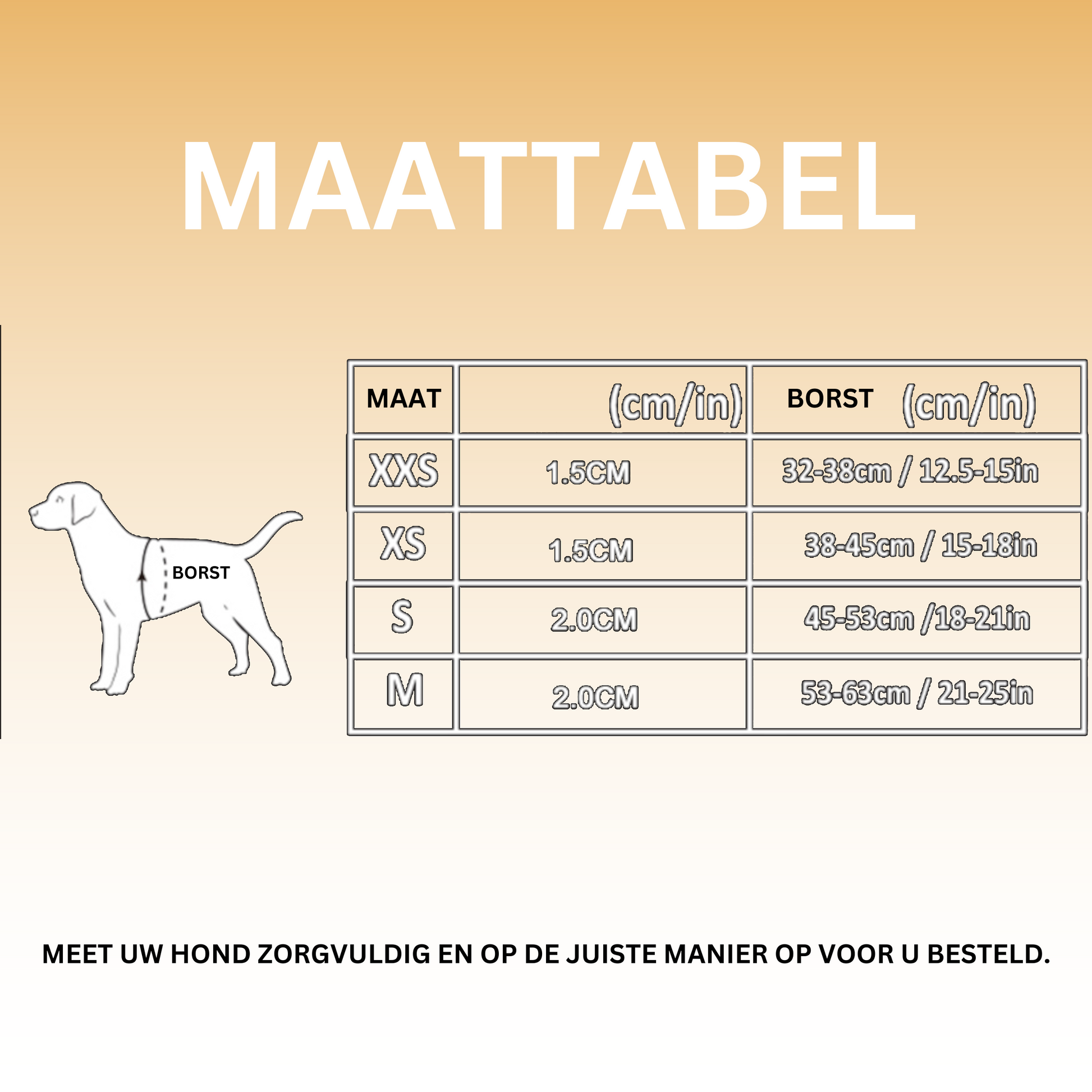 MEET UW HOND ZORGVULDIG EN OP DE JUISTE MANIER OP VOOR U UW BESTELLING PLAATST.