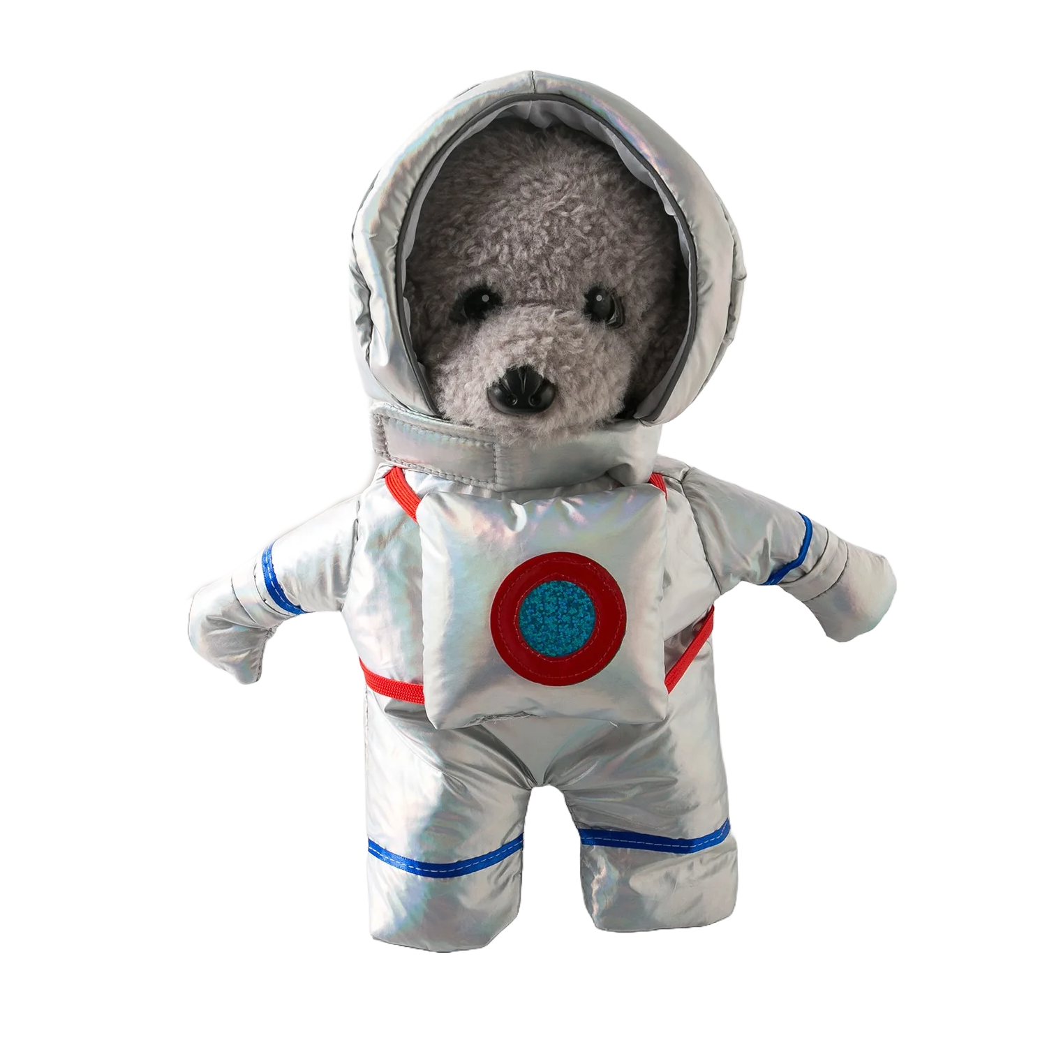 Stap samen met je harige vriend in de buitengewone en komische wereld van carnaval en Halloween met ons unieke Astronaut hondenkostuum! Laat je viervoeter rondlopen als een schattige astronaut, compleet met ruimtehelm en alle kosmische details, waardoor gegarandeerd iedereen in bewondering uitbarst.