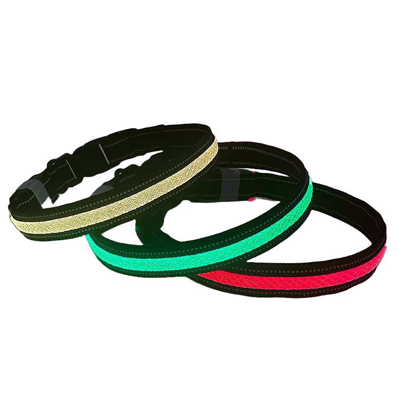 Ons Led Halsband biedt verschillende kleurmodi om uit te kiezen, waaronder vaste kleuren,Muziek & Microfoon Mudus en een opvallende wisselmodus. Zo kunt u de kleur aanpassen aan uw stemming, muziek of de gelegenheid.