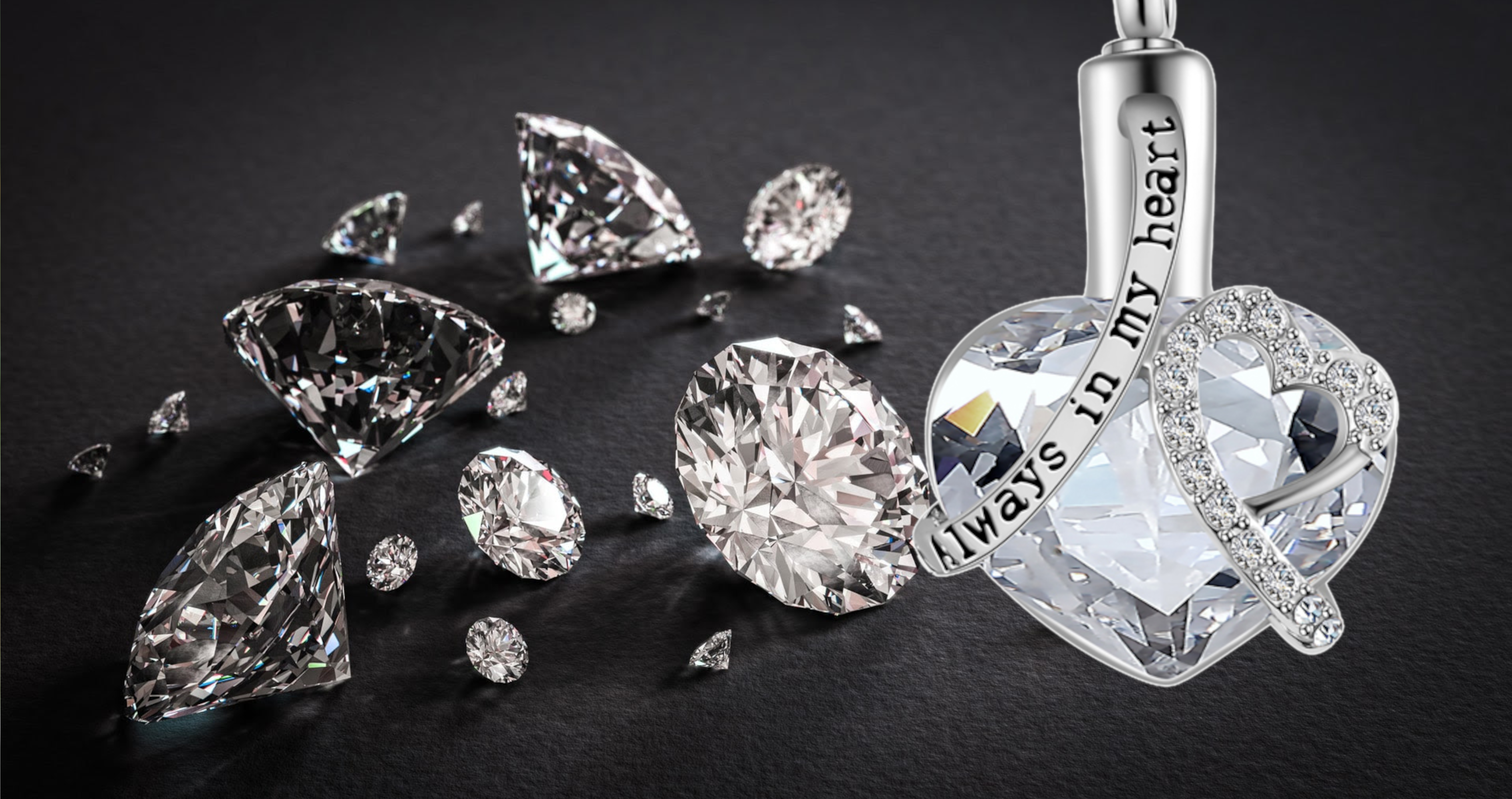 GEDENKKETTING - HART MET DIAMANT POOTJES