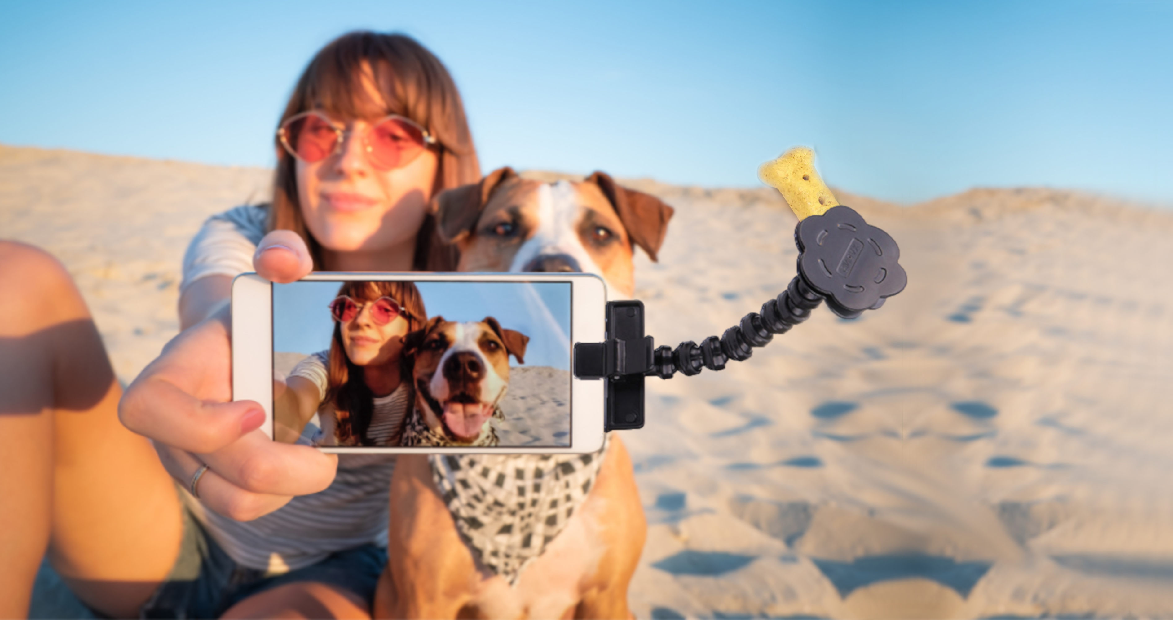 Onze Selfie Stick voor honden maakt het vastleggen van bijzondere momenten met je trouwe viervoeter gemakkelijker dan ooit tevoren.