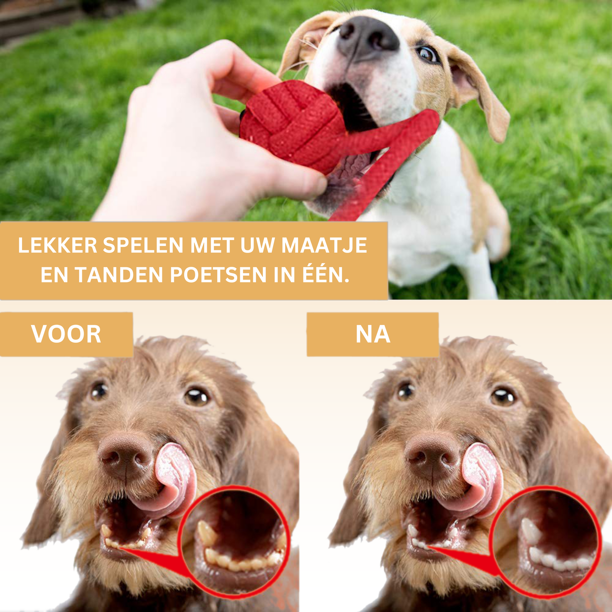 TERWIJL U EN UW HOND GENIETEN VAN LEKKER SAMEN SPELEN POETST U METEEN DE TANDEN.