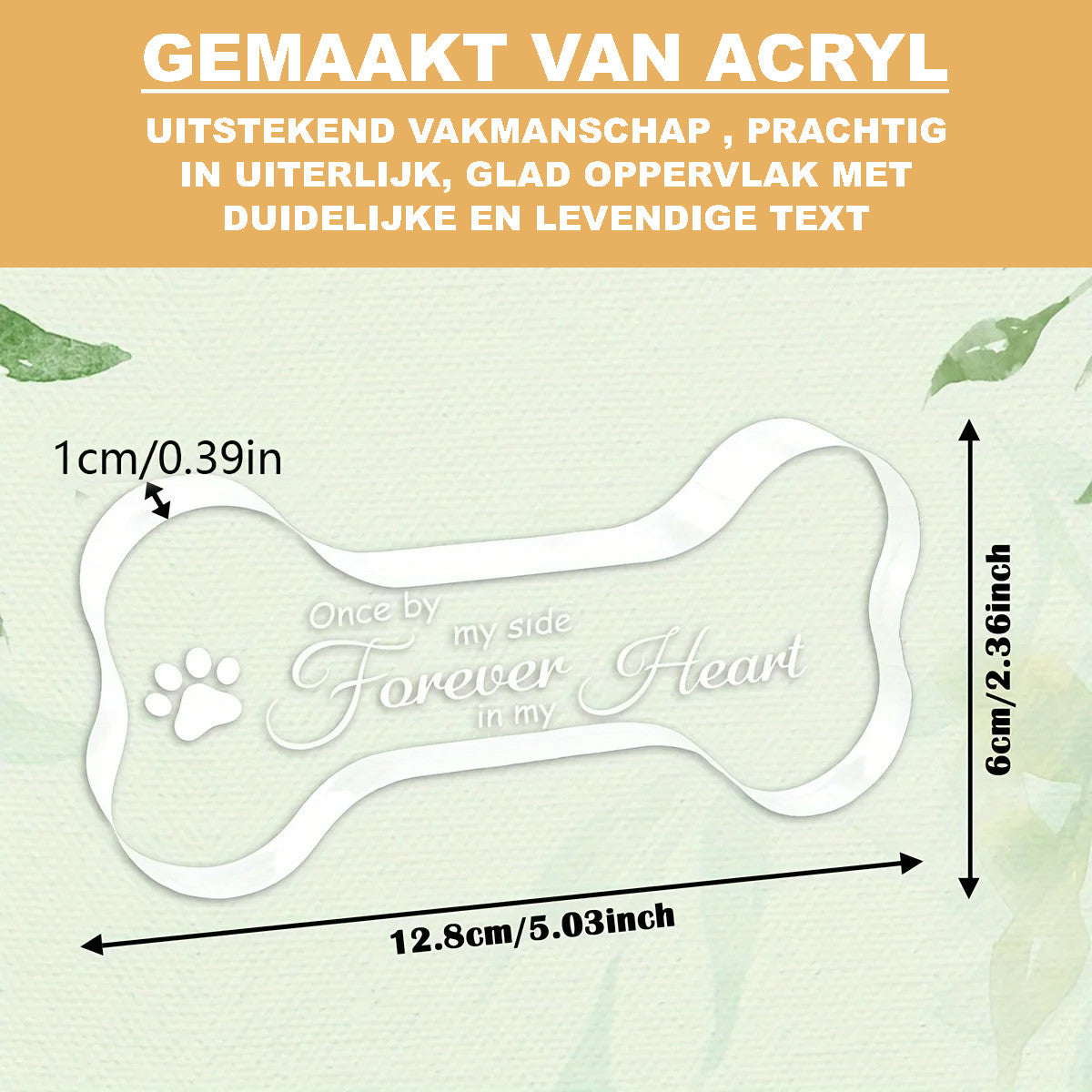Het verlies van een hond is een van de meest hartverscheurende ervaringen die we kunnen doormaken. Onze gedenksteen is ontworpen om een bron van troost te zijn tijdens deze moeilijke periode. Plaats deze steen op een speciale plek in huis, omgeven door foto's en herinneringen, en je zult voelen dat de aanwezigheid van je huisdier nog steeds bij je is, zij het in een andere vorm.