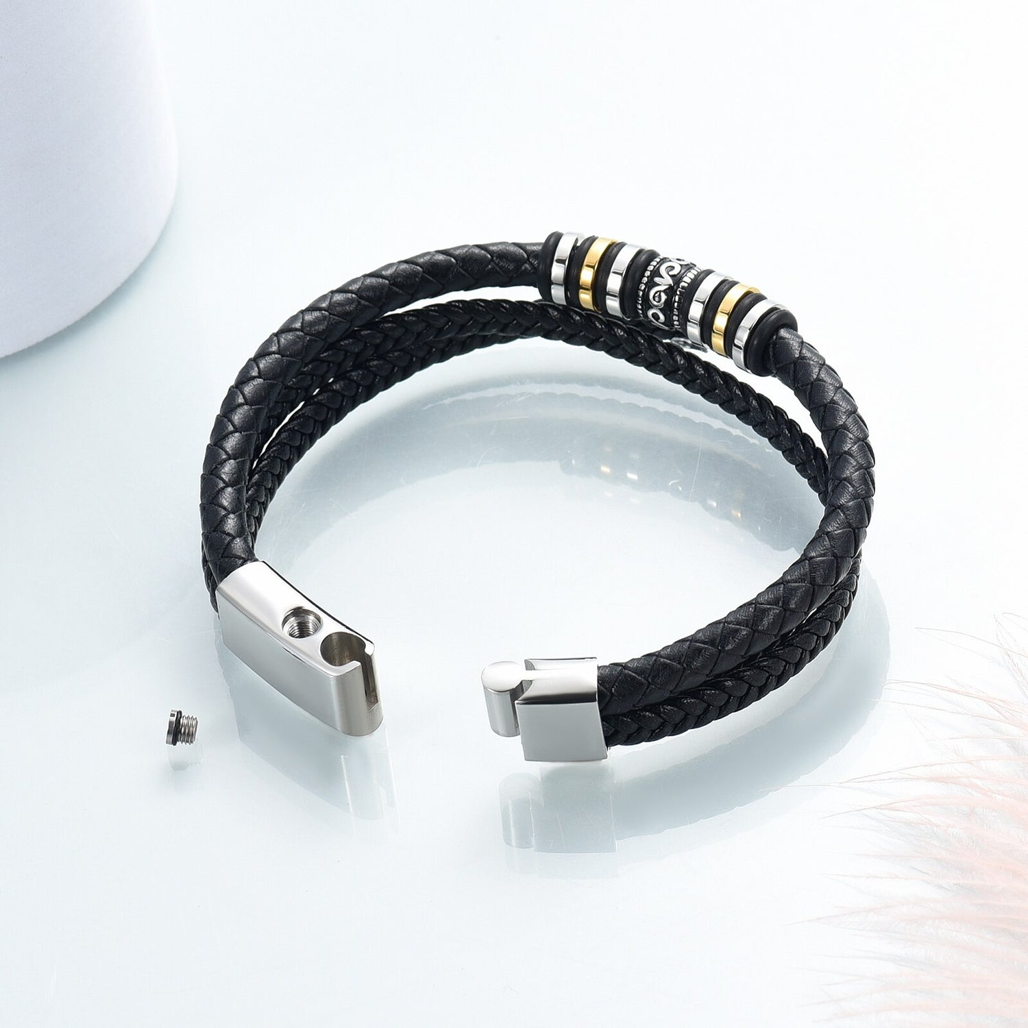 Een Liefdevolle Herinnering: Deze gedenkarmband is doordrenkt van gevoel en respect voor de unieke band die we delen met onze geliefde honden. Met zorgvuldige aandacht en liefde gemaakt, bevat de armband een klein compartiment dat veilig een symbolische hoeveelheid as of een haarlok van uw geliefde hond bewaart. Zo wordt hun trouwe aanwezigheid een kostbaar juweel om te koesteren, en hun liefde leeft voort, voor altijd bij u.