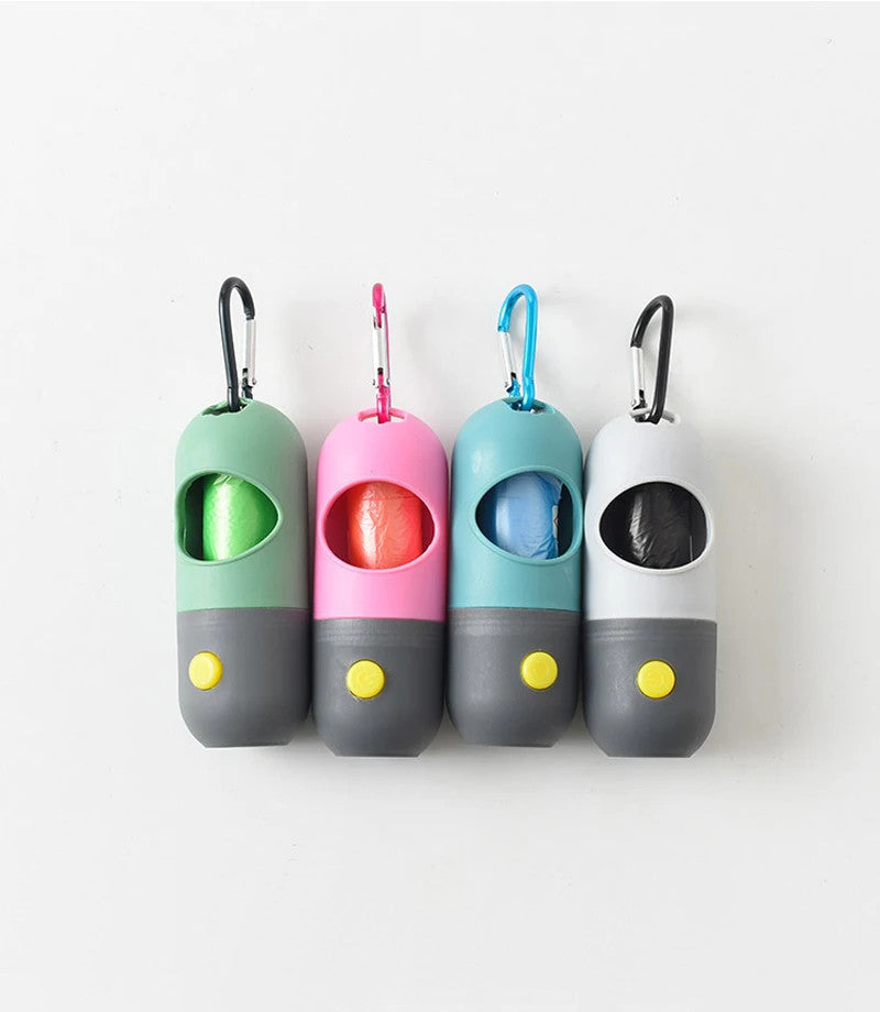 De kakzakhouder is compact en draagbaar, en past gemakkelijk aan de riem of aan jouw kleding, zodat je het altijd bij de hand hebt wanneer je het nodig hebt. Met een handig vakje voor kakzakjes blijven ze netjes opgeborgen en klaar voor gebruik, terwijl het lampje ervoor zorgt dat je nooit meer een onaangename verrassing mist.