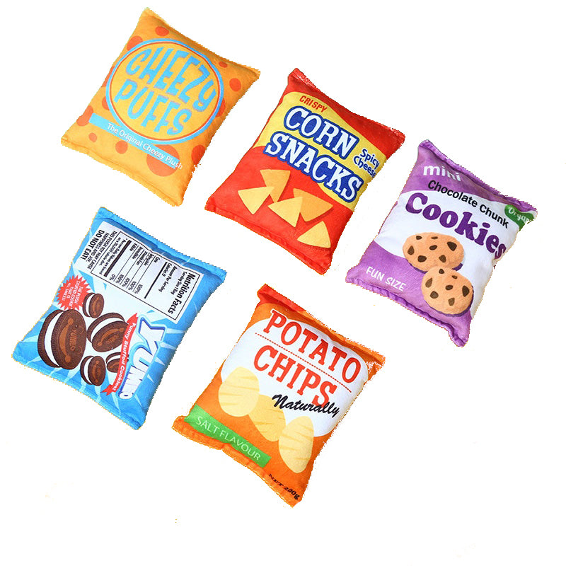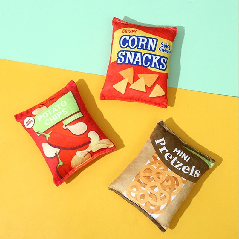 Lekker snack-achtig design: Dit speeltje is speciaal ontworpen om op een smakelijk zakje chips te lijken, waardoor het de aandacht van je hond direct zal trekken. De realistische kleuren en details maken het een onweerstaanbaar speeltje voor alle hondenrassen.