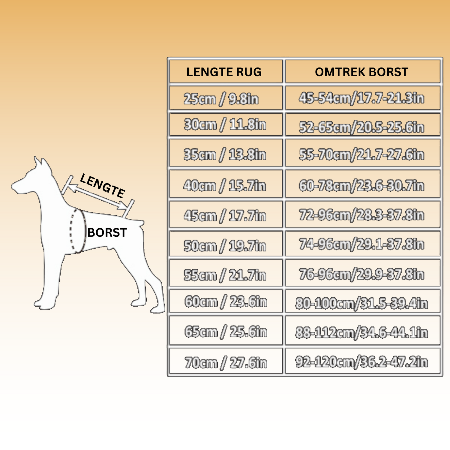 LET OP: Meet uw hond zorgvuldig en op de juiste manier op voor u uw bestelling plaatst.